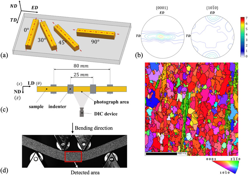 The relatively insufficient knowledge of the deformation behavior has limited the wide application of the lightest structure material-Mg alloys. Among others, bending behavior is of great importance because it is unavoidably involved in various forming processes, such as folding, stamping, etc. The hexagonal close-packed structure makes it even a strong texture-dependent behavior and even hard to capture and predict. In this regard, the bending behaviors are investigated in terms of both experiments and simulations in the current work. Bending samples with longitudinal directions inclined from the transverse direction by different angles have been prepared from an extruded AZ31 plate, respectively. The moment-curvature curves and strain distribution have been recorded in the four-point bending tests assisted with an in-situ digital image correlation (DIC) system. A crystal-plasticity-based bending-specific approach named EVPSC-BEND was applied to bridge the mechanical response to the microstructure evolution and underlying deformation mechanisms. The flow stress, texture, twin volume fraction, stress distribution, and strain distribution evolve differently from sample to sample, manifesting strong texture-dependent bending behaviors. The underlying mechanisms associated with this texture dependency, especially the occurrence of both twinning and detwinning during the monotonic bending, are carefully discussed. Besides, the simulation has been conducted to reveal the moment-inclination angle relation of the investigated AZ31 extruded plate in terms of the polar coordinate, which intuitively shows the texture-dependent behaviors. Specifically, the samples with longitudinal directions parallel to the extruded direction bear the biggest initial yielding moment.